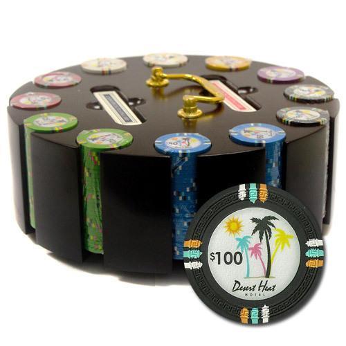 This is the 300 Ct "Desert Heat" clay composite poker chip set from Claysmith Gaming in a carousel case. This set includes 300 of the finest casino grade clay composite poker chips and 2 decks of playing cards. Claysmith offers true casino quality poker chips for the home player.