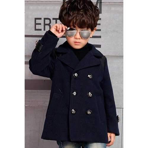 Fashionable Long Sleeve PU Spliced Buttoned Wool Coat For Boy - Cadetblue 120