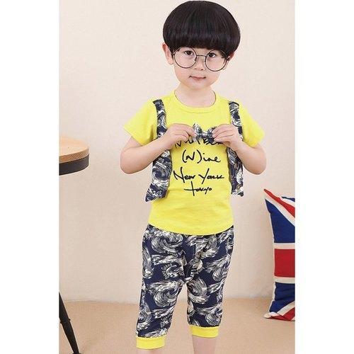 Stylish Short Sleeve Letter Printed T-Shirt + Crop Pants Boy's Twinset - Yellow 90