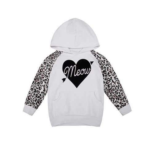 Casual Hooded Heart Pattern Leopard Girl's Sweatshirt - White 120