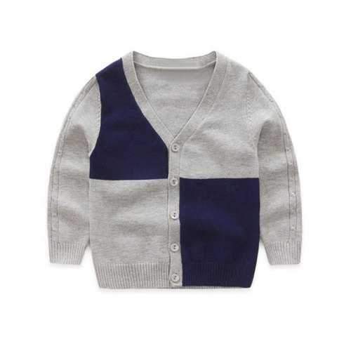 Casual Buttoned Color Block Boy's Cardigan - Gray 130