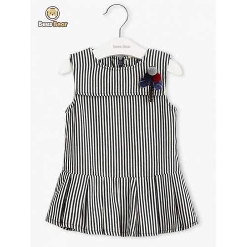 Style: Cute Material: Cotton Blend Silhouette: Straight Dresses Length: Mini Neckline: Round Collar Sleeve Length: Sleeveless Embellishment: Bowknot Pattern Type: Striped With Belt: No Season: Summer Weight: 0.148kg Package Contents:...
