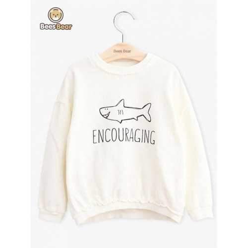 Girls Long Sleeve Shark Pattern Letter Print Sweatshirt - White Child-4