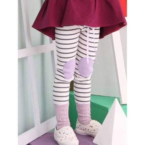 Stylish Elastic Waist Striped Patch Splice Leggings - Purple 120