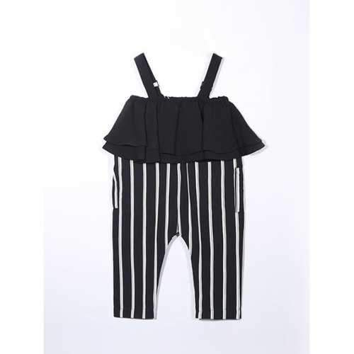 Flounce Embellished Striped Suspender Jumpsuits - Black 120