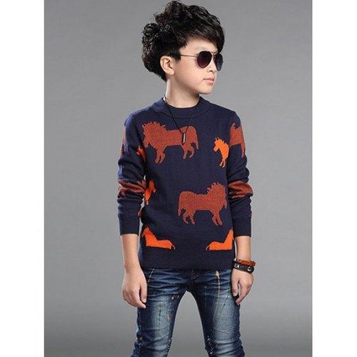 Horses Printed Sweater For Boy - Red 130