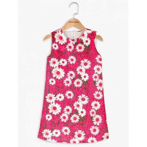 Sunflower Print Mini Princess Dress - Rose Red 100