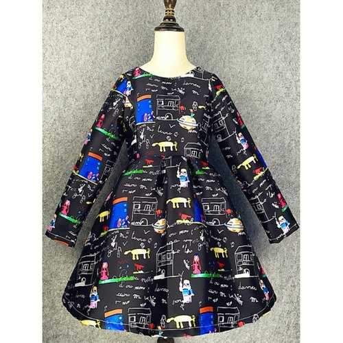 Long Sleeve Cartoon Scrawl A Line Dress - Black 120