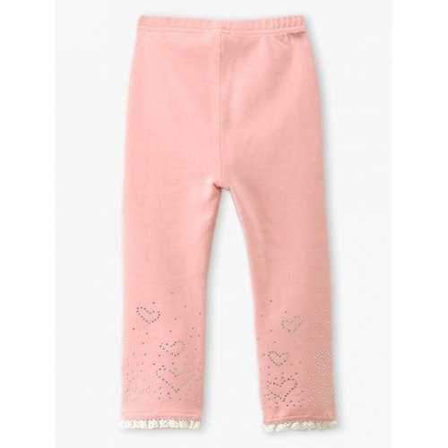 Rhinestone Design Lace Spliced Leggings - Pink 80