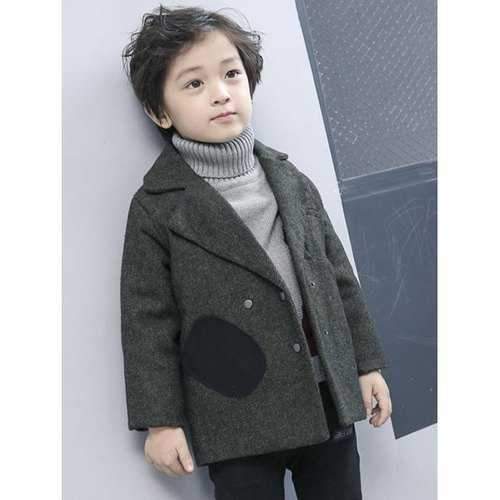 Boys Double-Breasted Wool Coat - Blackish Green 100