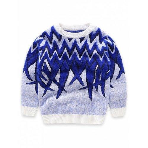 Pullover Wool Color Block Sweater - Blue 120