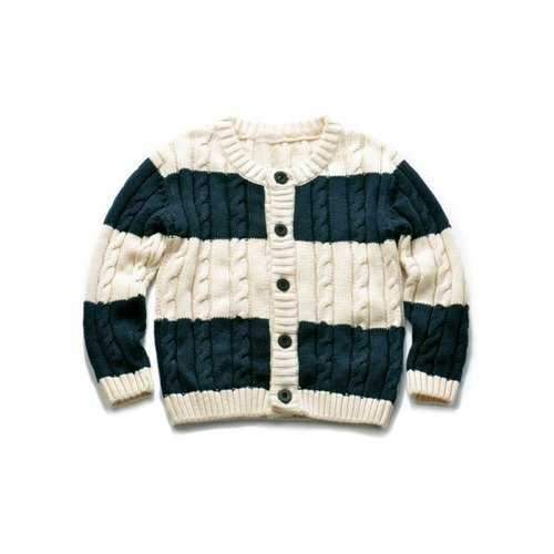 Buttoned Stripe Knitted Sweater Cardigan - Deep Blue 130