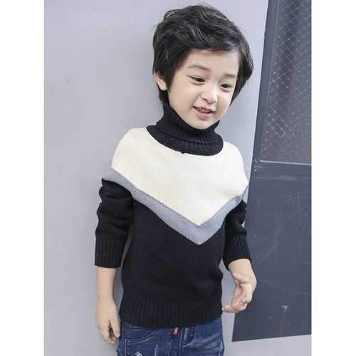 Boys Roll Neck Color Block Sweater - Black 130